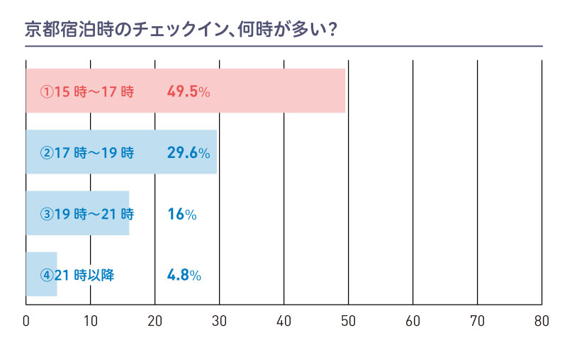 京都宿泊時のチェックインは何時が多いのでしょう?チェックイン前に荷物を預ける派?夕食は前・後?など、皆様のこだわりを調査しました。