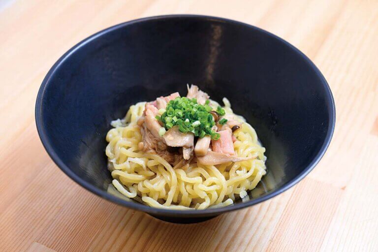 実験的なメニューが随時登場。取材時の限定麺は、ベーコンときのこが香る秋限定の油そば秋香(並950円)。