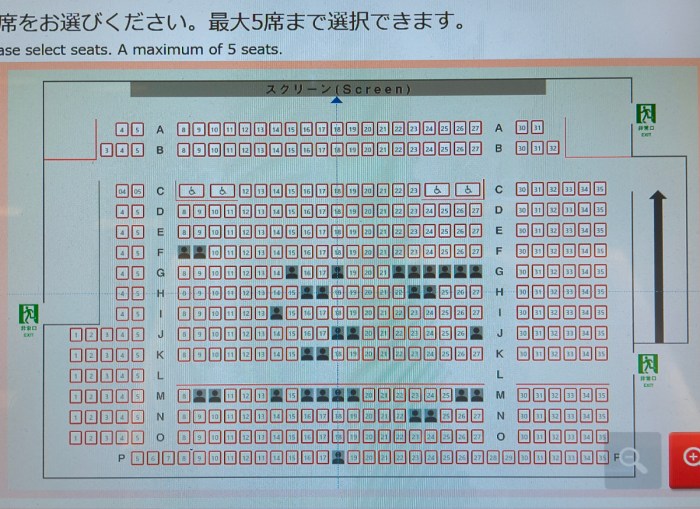 客入りはあまりよろしくない様子。13時30分の回で入ることにして、座席表を見てみると、3分の1も埋まってないなあ。カウントすると32名。私を入れて33名だ。429席中の33ってことは10分の1にも満たないか。滑り出しはやはり良くないな~。