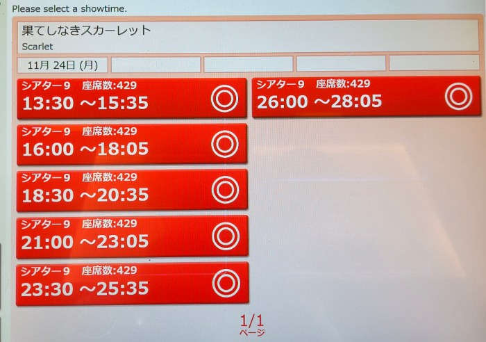 それはさておき、この日、11月24日は勤労感謝の日の振替休日だ。公開初週の祝日なのに、チケットを取らずに来てしまったけど、発券機を見ると、午後の上映は全て席が空いている。