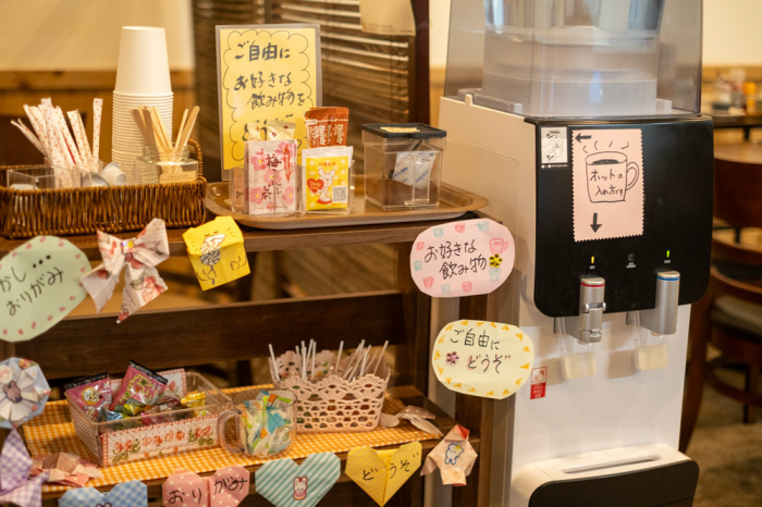 「折り紙」や「お菓子」など、家族連れには嬉しい“子ども向けの無料サービス”も充実しています。