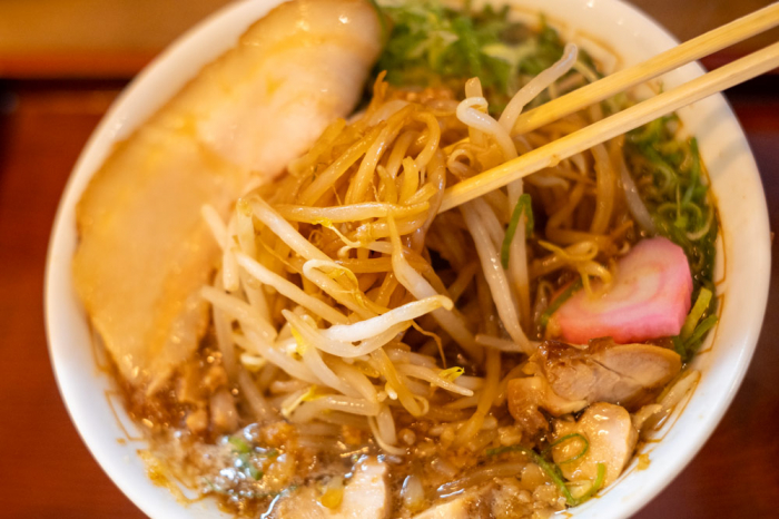 さっそくモヤシの大群の攻略にかかると、ここでひとつ衝撃が走ります。味覚にガツンと響くパンチの効いた味付けはまさしく二郎系ですが、口の中に残る余韻が一般的な二郎系と比べて明らかに軽い…!