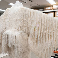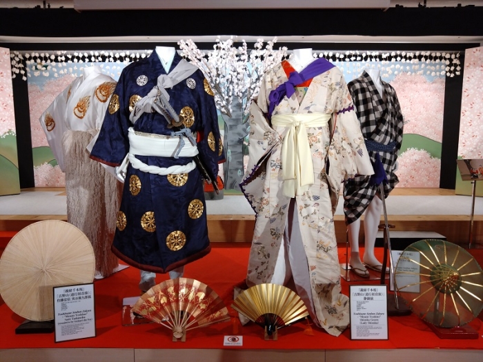 歌舞伎の知識も深まったところで、メインとなる歌舞伎座ホールの中へ足を踏み入れると、目の前に広がるのは、「本物」の舞台美術や、小道具、衣裳がギュッと詰まった『義経千本桜』の世界。舞台には十月歌舞伎座の第三部で上演される「吉野山」が再現され、その前には「すし屋」のいがみの権太、「吉野山」の忠信と静御前、そして「川連法眼館(四の切)」の源九郎狐の扮装が華やかに並ぶ。