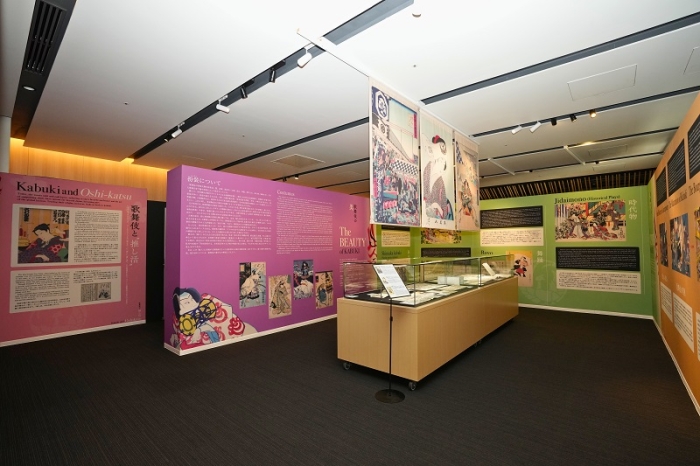 『義経千本桜』の各場面を描いた芝居絵のデジタル展示を堪能したあとは、歌舞伎全般の学びを深めることができるエリアに進む。今年2月より常設で展示していた「歌舞伎の歴史」「歌舞伎の分類」「歌舞伎の美」に加えて、新たに「歌舞伎と推し活」のコーナーが追加。江戸時代から変わることのない「推し」に対するファンの熱量には、現代の我々も共感が止まらない。さらには、松竹や歌舞伎座のはじまりが収められた貴重資料の展示もあり、特別展ならではの取り揃えで、江戸時代より積み重ねられてきた歌舞伎の奥深さを見ることができる。