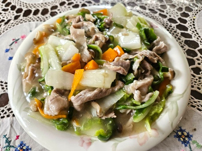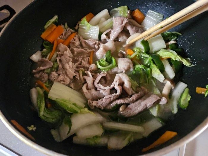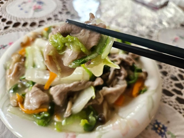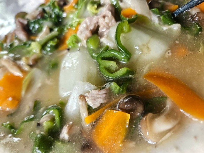 沸騰したら、水に溶いたパーポーを加え弱火でさらに煮れば完成だ。
