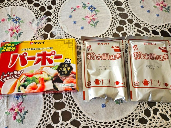 タマノイ酢株式会社が販売をしている八宝菜が作れる粉末調味料とのこと。ネットの情報によると関西ではお馴染みの商品らしい。