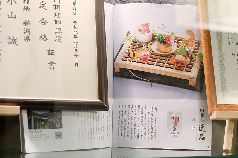 小山さん:はい、新発田にある日本料理店で料理長を務めました。ミシュランのビブグルマンをいただいたのをはじめ、「全国日本料理コンクール」の「技能賞」や「新潟ガストロノミーアワード2024」をいただいたりして、南青山の店で修業するきっかけになった雑誌に、今度は私が掲載してもらえるようになったんです。とても感慨深かったですね。