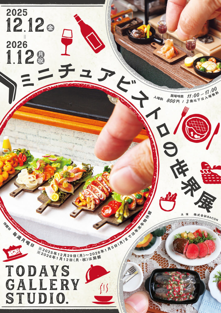 2025年12月12日 (金) 〜2026年 1月12日 (月)の期間、浅草橋のTODAYS GALLERY STUDIO.で「ミニチュアビストロの世界展」が開催されます!