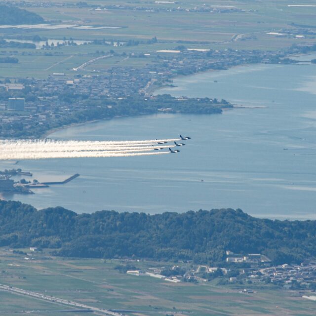 最後は、伊吹山から撮影されたブルーインパルスと琵琶湖。