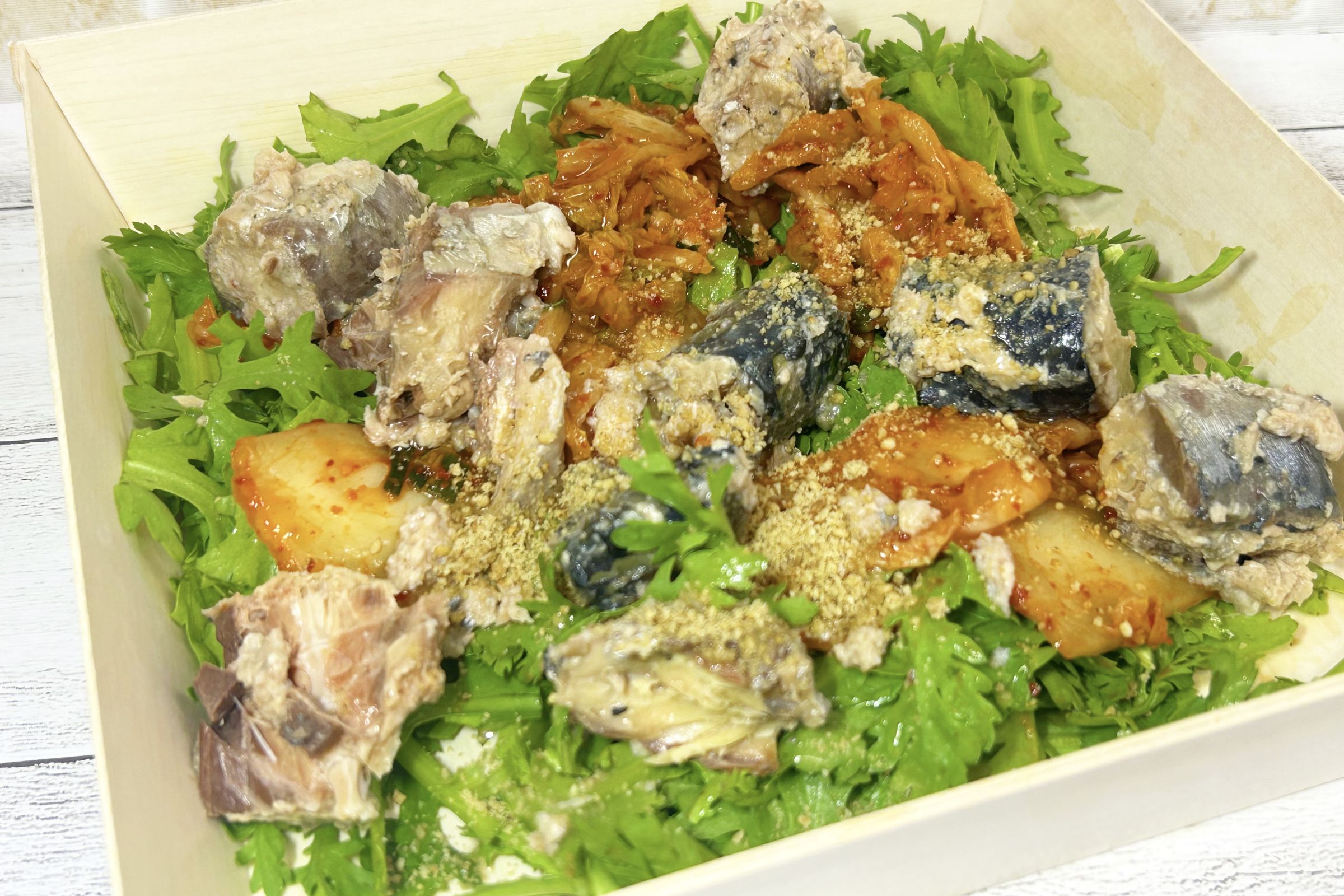 たんぱく質は、1人分でおよそ22.2g。サバ缶だけでも100g当たりでたんぱく質はおよそ20gと、実は高タンパクな食材のひとつなんです。味もしっかりしているので、調味料が少なく済みます。