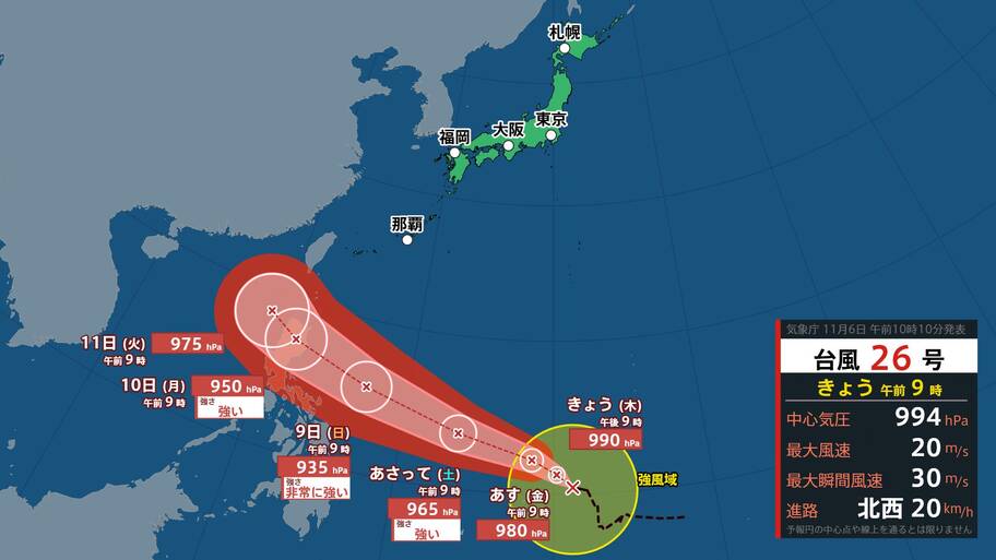 大きく変化する気圧にも注意