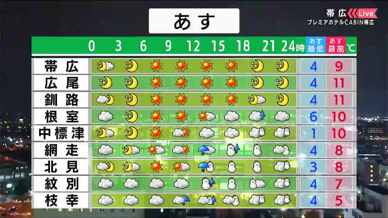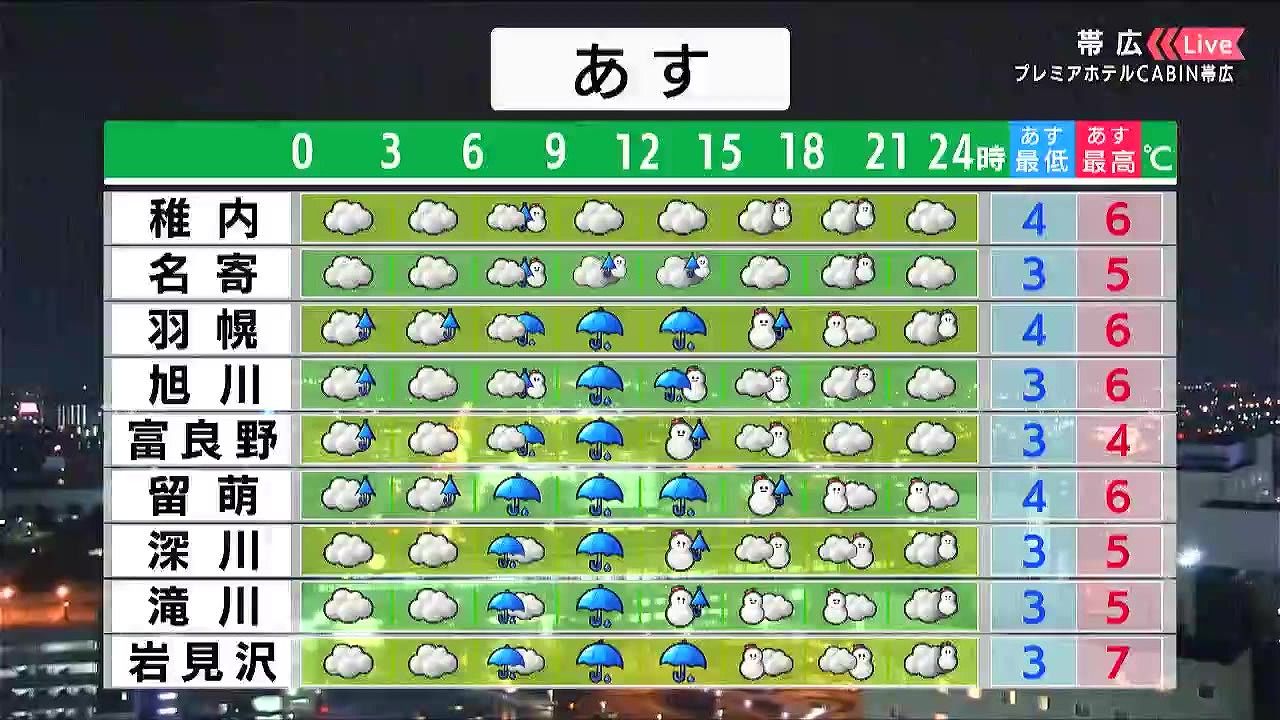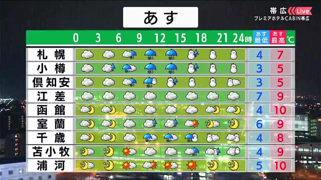 ・あすの札幌の朝昼晩の天気