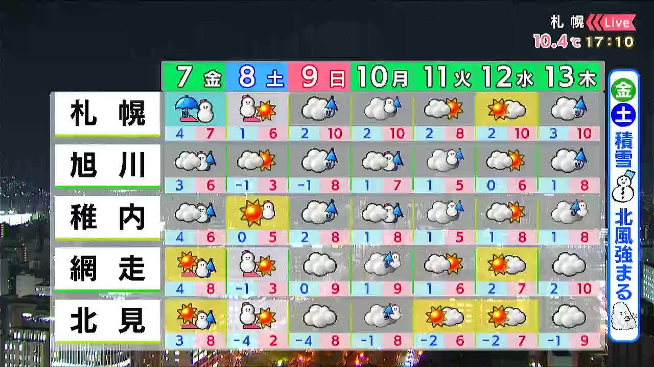 「二季」は北海道でも…あす7日からさらに冬に!札幌市でも雪がうっすら積もる 北海道の天気予報&気象予報士解説/2025年11月6日更新