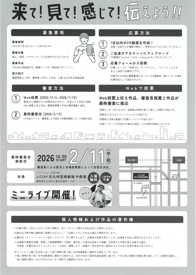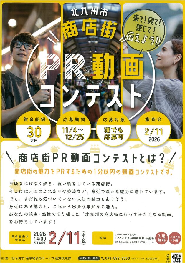 北九州市主催〈賞金総額30万円〉商店街PR動画コンテストが現在、作品募集中!応募締切は 12月25日まで。