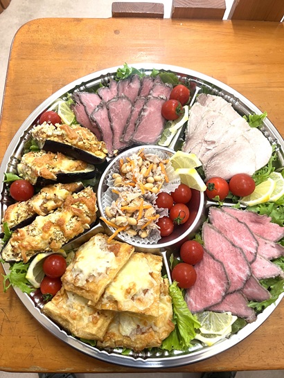 また、買い物に困っている人や自社商品の購入者を対象に、オードブルの販売も始めた。長時間低温焼成したローストビーフや自社商品を使用した総菜など、すべて自社で手作りし、人数や予算に合わせて対応する。