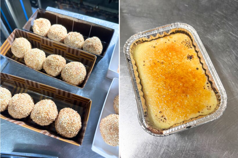 冷凍スイーツとして販売している「とうふ入り焼きごま団子」(左)と「豆乳カタラーナ」(右)