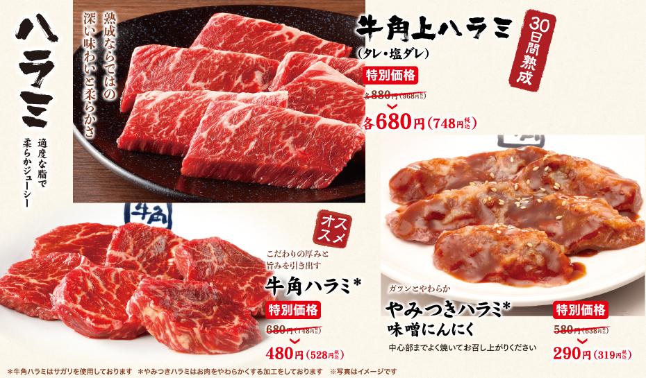 【牛角】やみつきハラミが「半額」に!人気の3種が今だけお得に楽しめる半額ハラミ祭り開催。