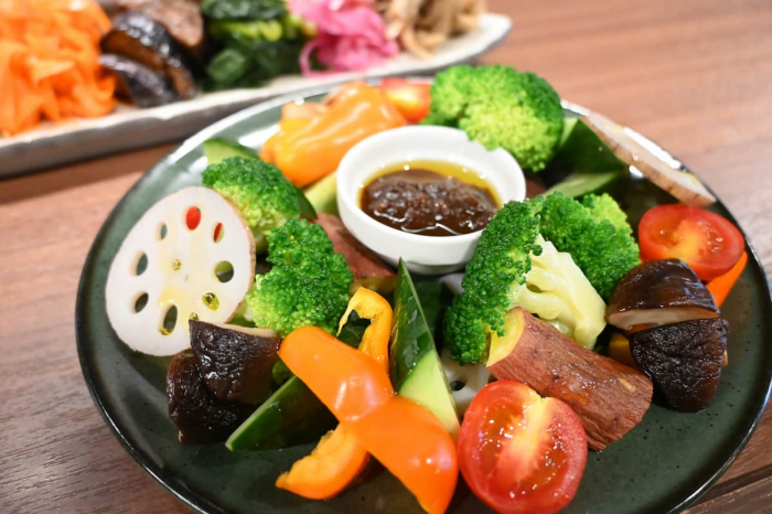 こちらも、宍粟市産の野菜がたっぷりと使用された「野菜の盛り合わせ」。言うまでもなくすごいボリューム!カラフルで目でも楽しめます。