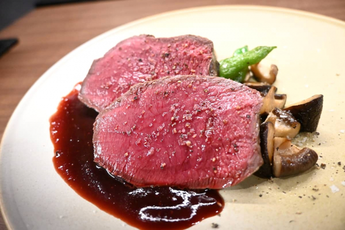 記者にとっては初の鹿肉の実食!臭みがなく、しっかりとしたお肉の旨味を感じました。ヘルシーな赤身がブルーベリーとストロベリーのソースにマッチしていて、思わず笑顔になるお味でした。