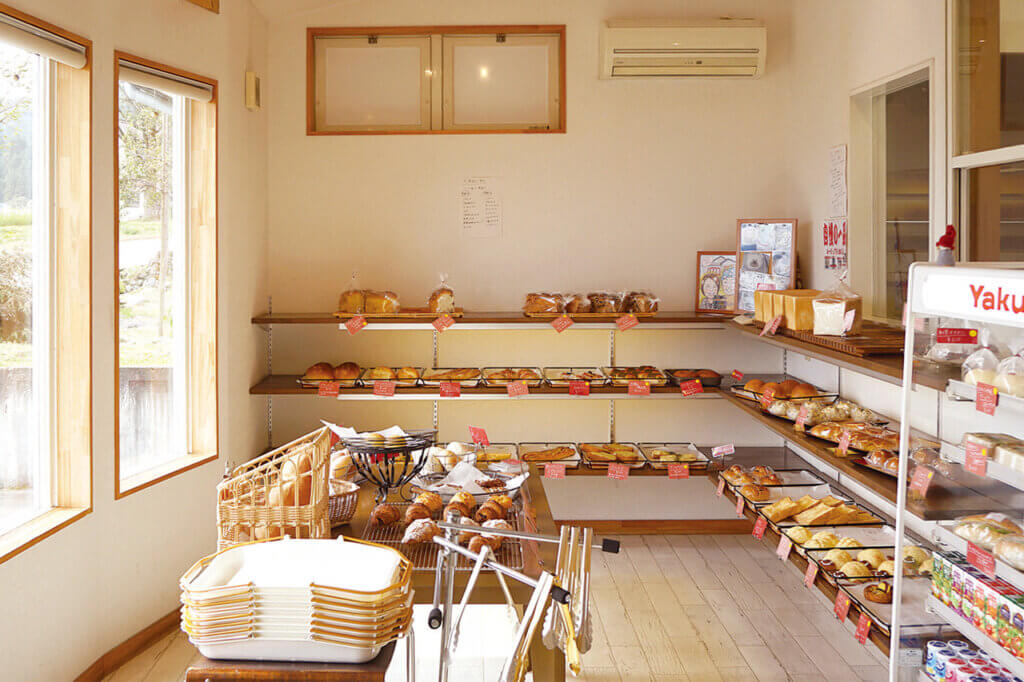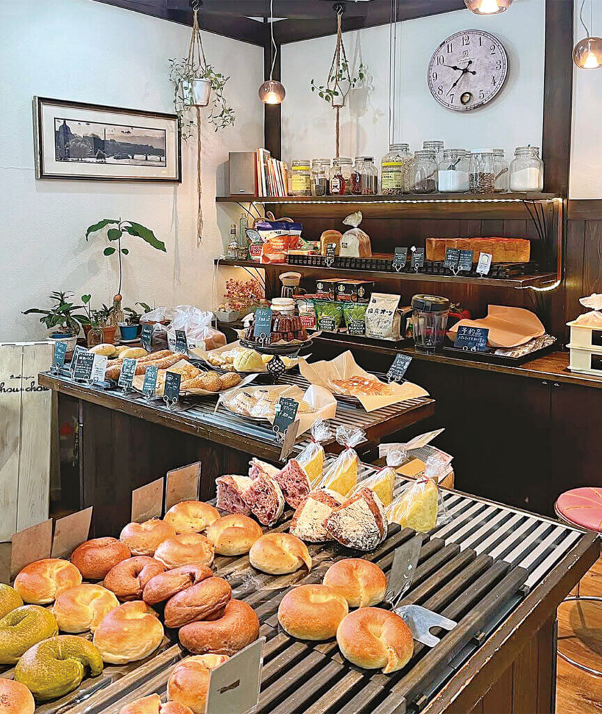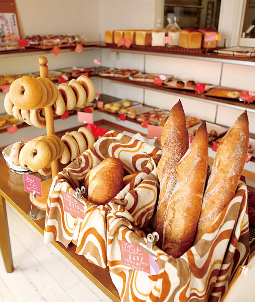 国道から入った住宅街にたたずむ隠れ家的なベーカリー。周辺の温泉や散策途中に立ち寄る人も多いこちらは、保存料・添加物不使用の生地を使い、長時間発酵させた体に優しいパンを提供する。
