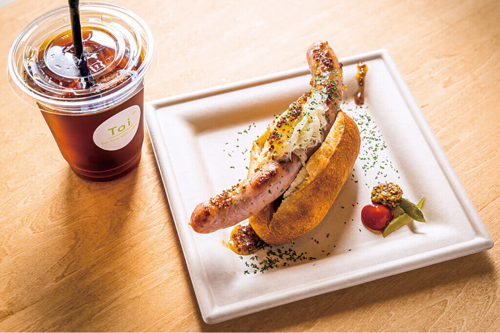特注のミニバゲットに長い生ソーセージを挟んだToiサンド(890円)は数量限定メニュー。
