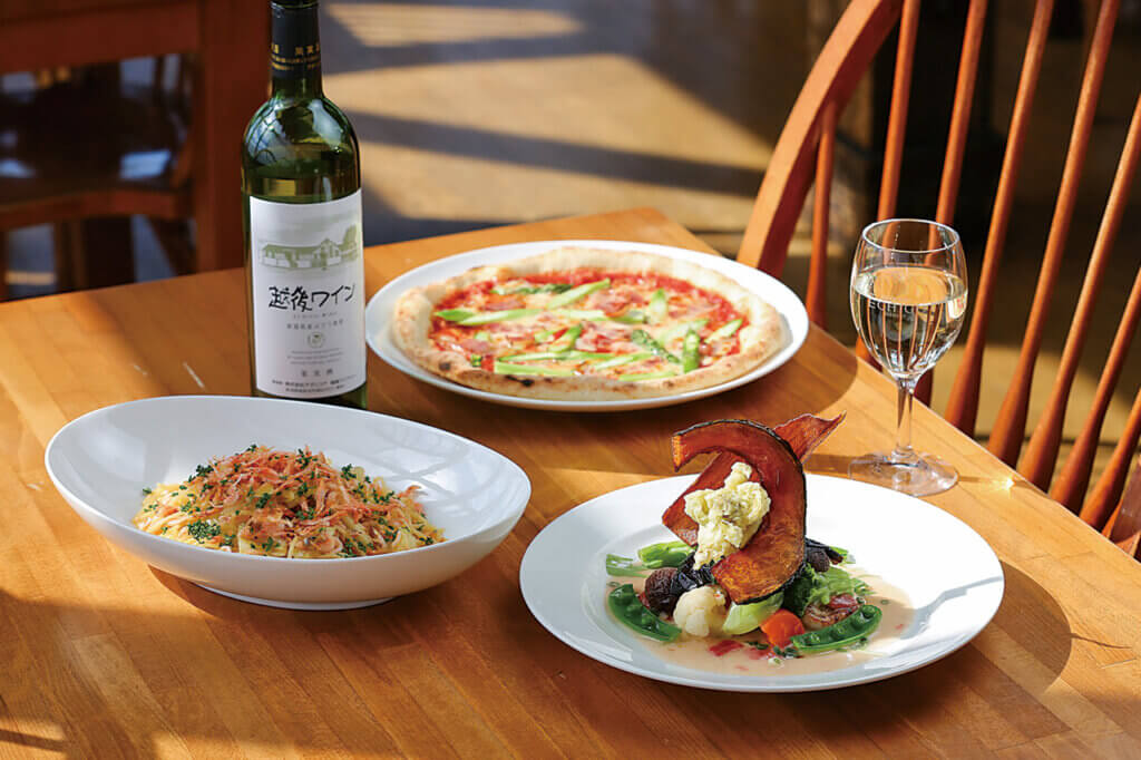 施設内には雪室でワインを熟成する地下の雪室貯蔵庫見学や試飲コーナーがあり、観光スポットとしても人気だ。併設のレストラン「葡萄の花」ではワインとともに欧風料理を味わえる。