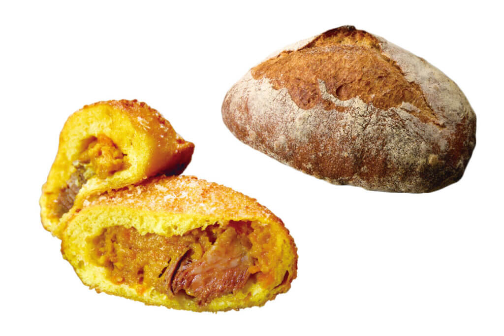 左/ごろっと和牛カレーパン(350円)はにいがた和牛がゴロリと入った贅沢な一品。 右/八海山塩麹ロデヴ(480円)。八海山の塩こうじを練り込み、うま味をプラスした看板メニュー。