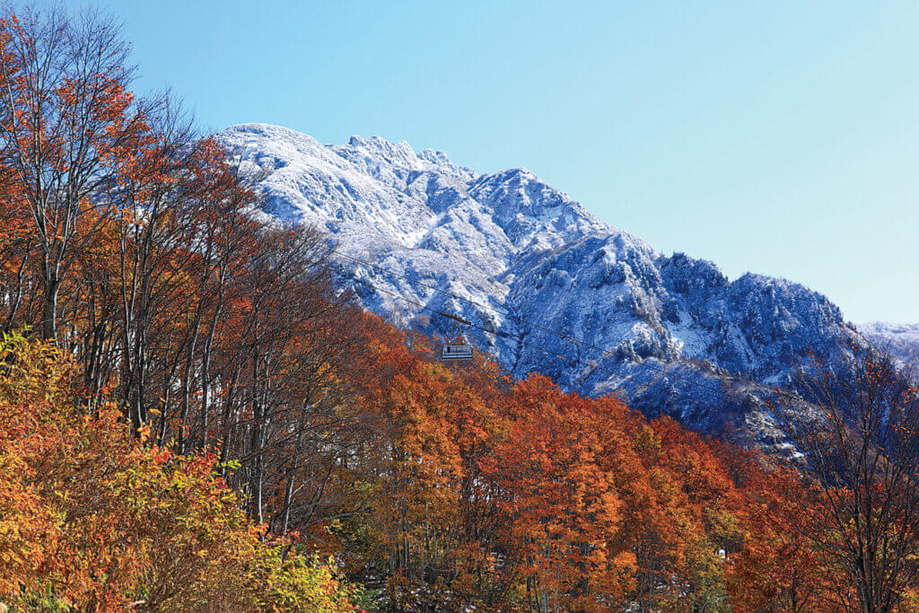 紅葉の見頃は10月中旬から11月上旬。81人乗りのロープウエーでは、八海山の4合目に到達することができる。