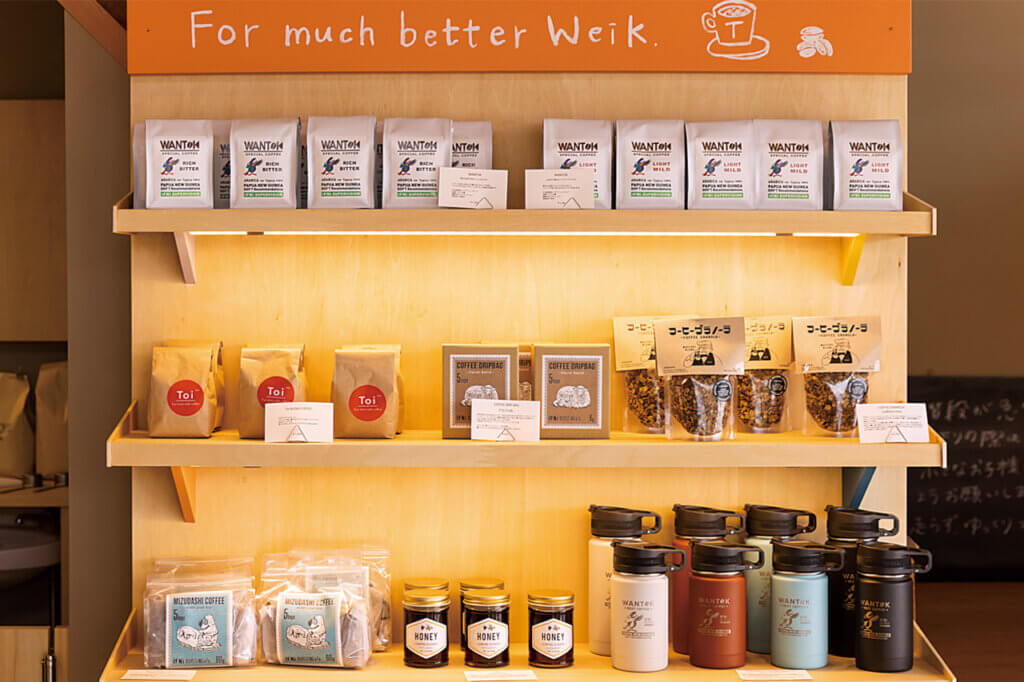 パプアニューギニアに自生する豆を使ったクセがなく日常的に飲みたくなるスペシャルティコーヒーを提供するほか、スタッフが実際に使って選んだおすすめの生活雑貨も取りそろえる。