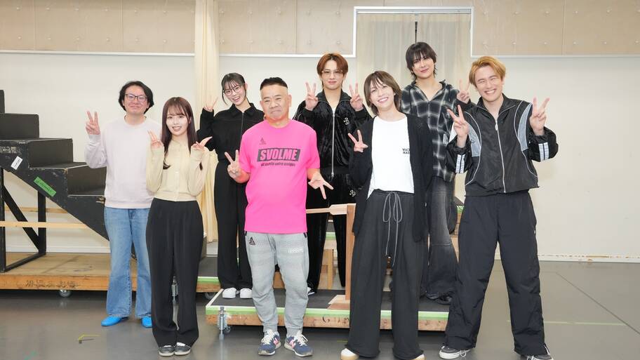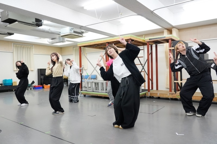 また、カンパニーのムードメーカーを聞かれ、笹森と雷太は、すかさず仲田を指差し。それを受けた仲田は「そんなわけないでしょ! どう考えてもあなたがたでしょ!」とリアクション。笹森さんは「両サイドにいるお二方(雷太と原西)がなかなか元気で。本当に雰囲気のいい稽古場です。演出の井上テテさんも、何かやるたびに、いいねいいね! みたいな感じで言ってくださったりとかするので、挑戦しやすい場所だなって思っています」と、稽古場の様子を語った。