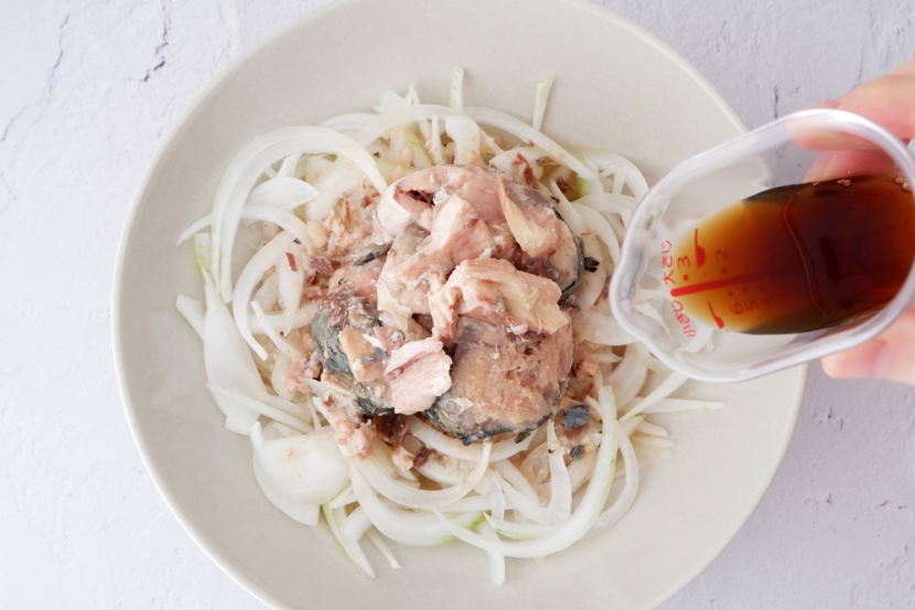 仕上げにポン酢またはしょうゆをかけてできあがりです。サバの水煮は骨まで食べられるほど柔らか、肉厚で脂ものっており、旨みもたっぷりです。サバ缶の旨みが玉ねぎに馴染むと、より辛みが抑えられて食べやすくなります。時間が経つと玉ねぎがしんなりとしていくので、シャキッとした食感を楽しみたければ作りたてを食べるのがおすすめです。