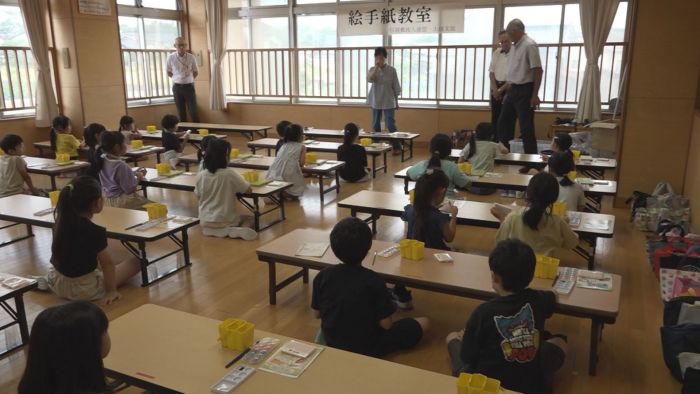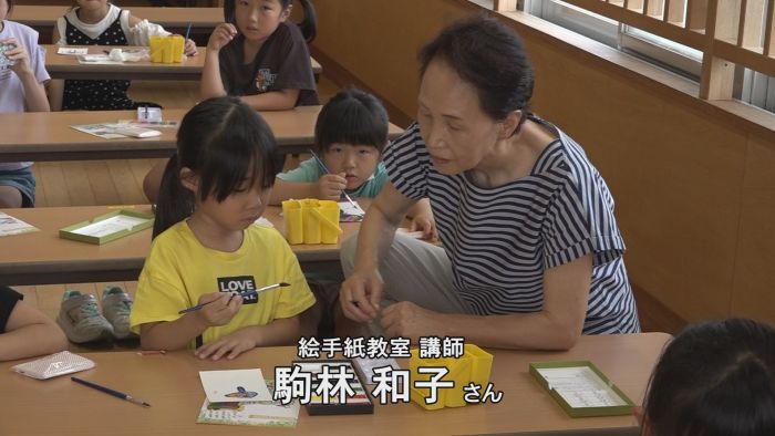 手紙を書く文化に親しんでもらおうと、上越市の大潟放課後児童クラブを利用している小学生を対象に児童館で絵手紙教室が5日(火)に開かれました。