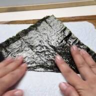 ③ 焼きのりの上に、【B】を混ぜたご飯を広げる。①と②をのせて手前から奥に向かって巻き、食べやすい大きさに切ったら、完成!