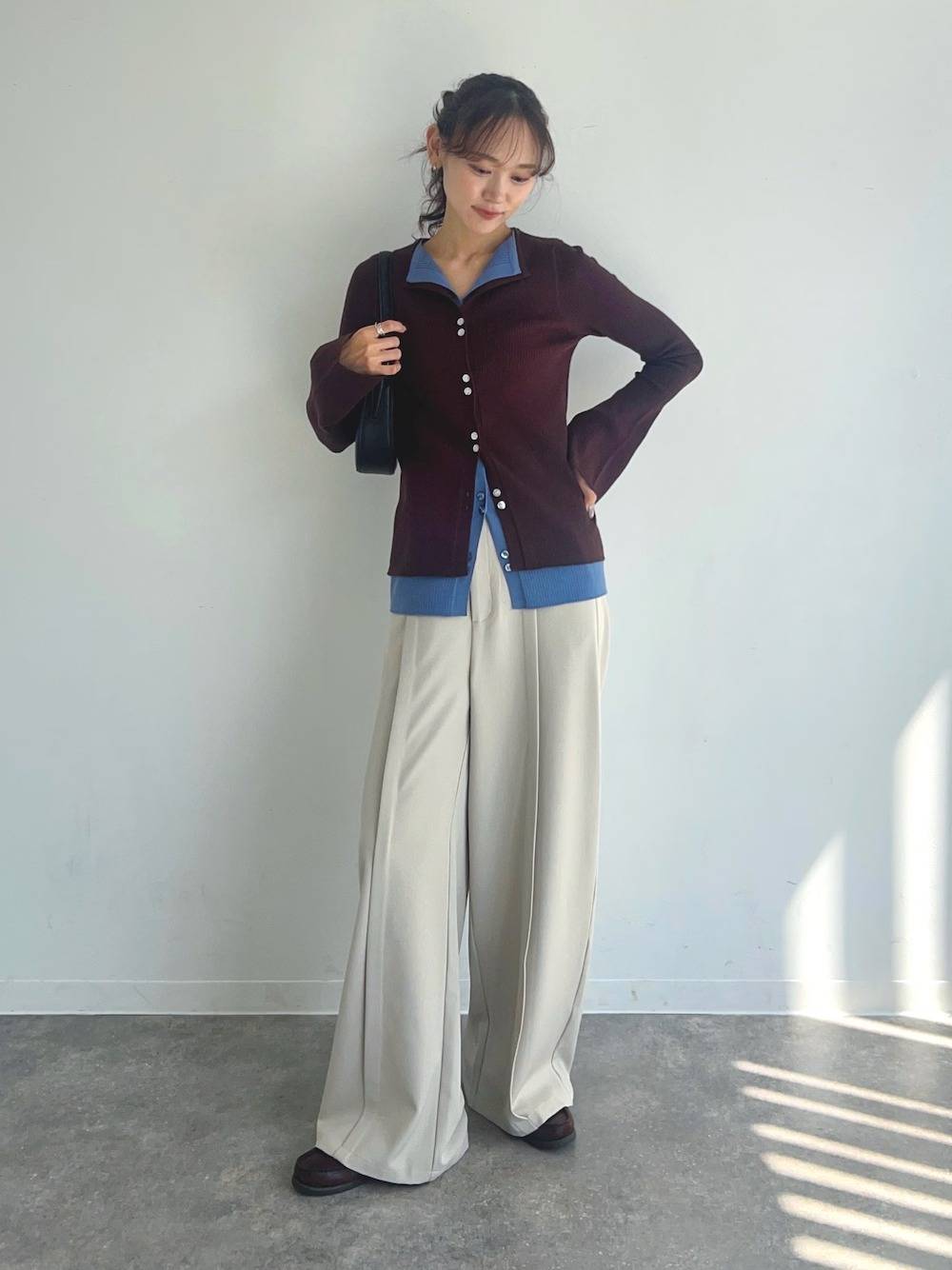 【10月編】太って見えないワイドパンツコーデ②バイカラーカーディガンで視線を上げる♪