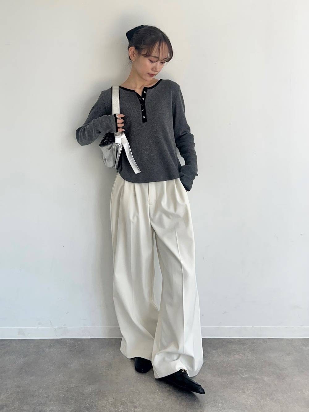 【10月編】太って見えないワイドパンツコーデ③ヘンリーネックのトップスを選ぶ♡