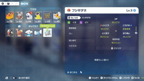 ここで選択したポケモンは性別・せいかくはランダムですが、個体値3個所が「さいこう!」で確定となります。