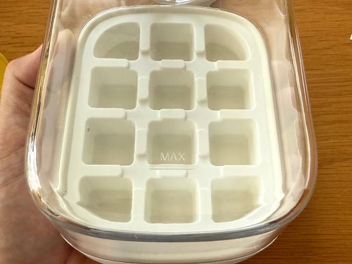 氷ができたようなので実際に使ってみることにした。氷を外すには上からワンプッシュする仕組みなのだが、これが意外と固い。