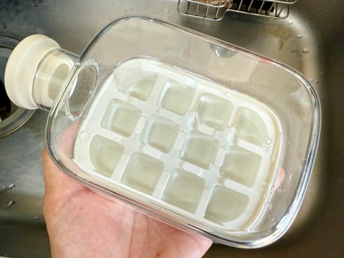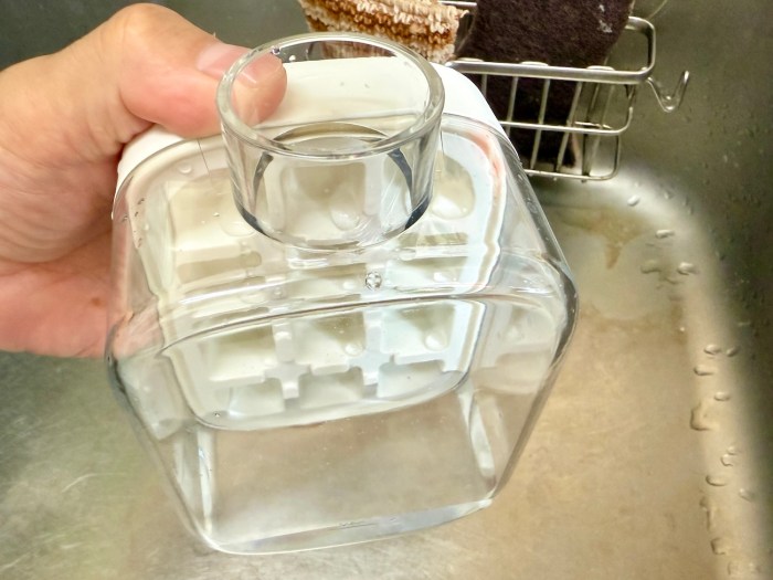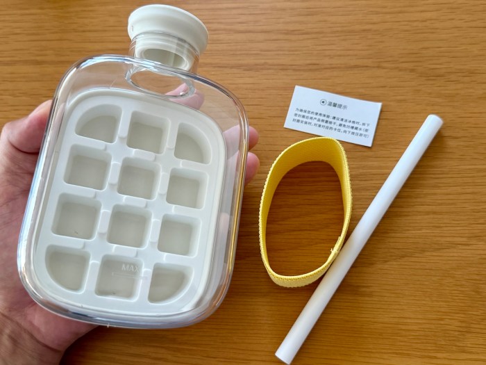 690円と言われれば納得のチープ感が漂っている。ただ、ボトルの中にシリコン製の製氷トレイがスッポリ収まっているのはやはり画期的だ。