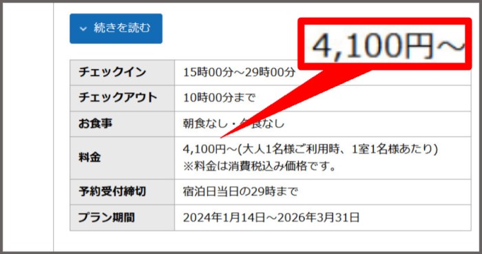 それで気になる料金は、最安が税込4100円! マジかよ、地方とはいえ、今どきそんな価格で宿泊できるビジネスホテルがあることに驚きだ。連泊(アメニティ交換なし)なら1泊3400円ですって。ありがてえありがてえ! ちなみに私が予約した段階では、1泊税込5900円だったが、ヨソよりはるかに安かったので、ここに泊まることに決めた。