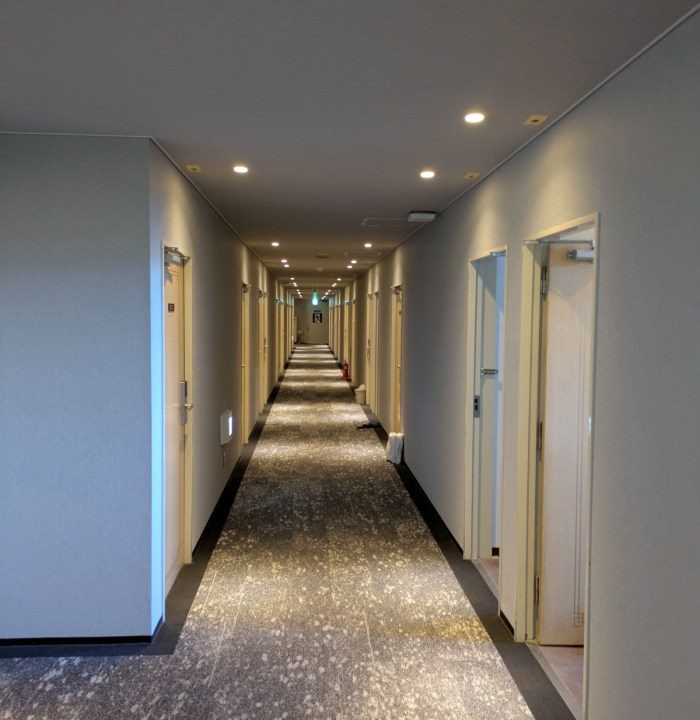 さて、部屋のある階に到着。チェックインするには少し早い時間だったので、私以外に利用客はいなさそうだ。静かでキレイな施設じゃないの。それが最安1泊4100円はホントにイイ!