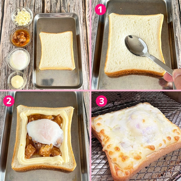 ① スプーンを使い、食パンに軽くくぼみを作る。