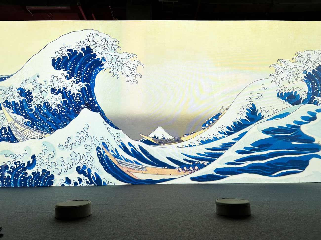 寺田倉庫 G1ビルでは、江戸時代の浮世絵を立体映像空間で紹介。葛飾北斎や歌川国芳、歌川広重、喜多川歌麿、東洲斎写楽、歌川国貞などの浮世絵作品300点以上を映像化。江戸時代に刷られた浮世絵や復刻版の浮世絵も展示し、浮世絵の歴史についても解説します。
