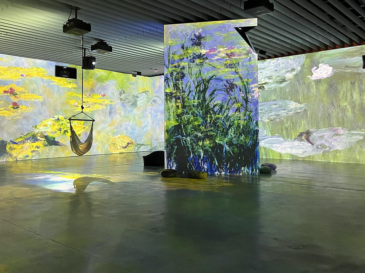 「没入感のある」「没入型の」といった意味をもつイマーシブ(immersive)。印象派や浮世絵などの作品やアーティストの人生を、臨場感溢れる映像と音楽で体感することができます。