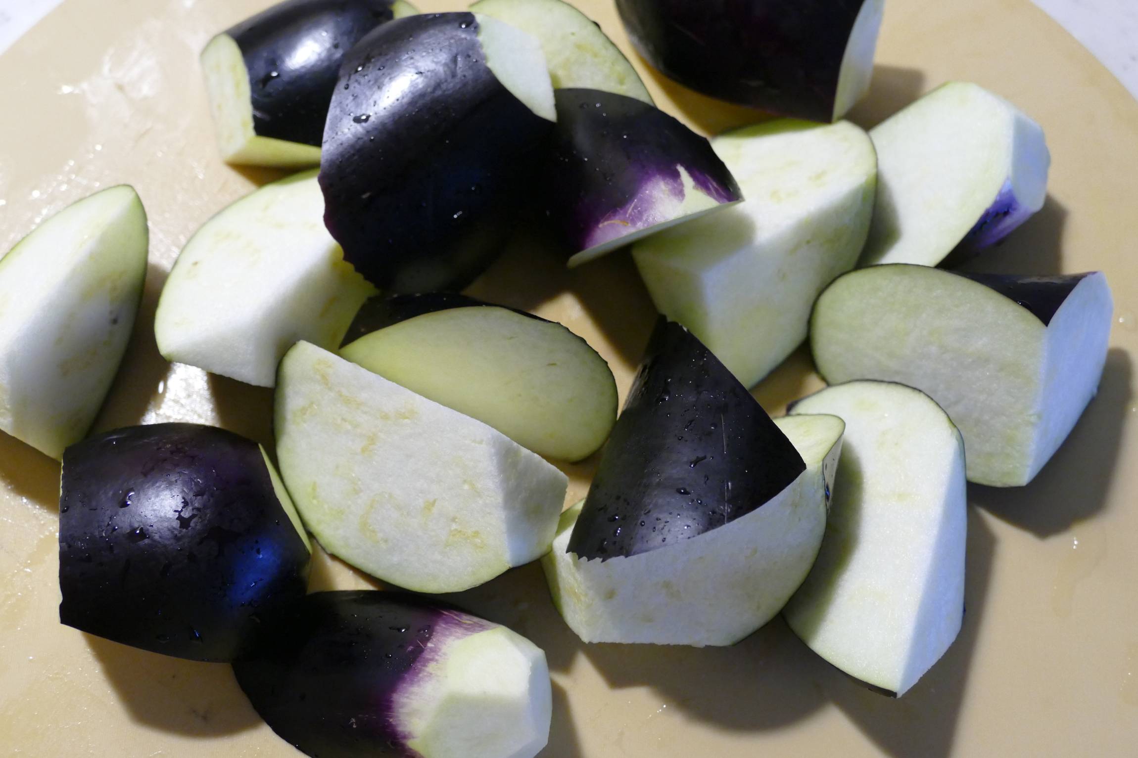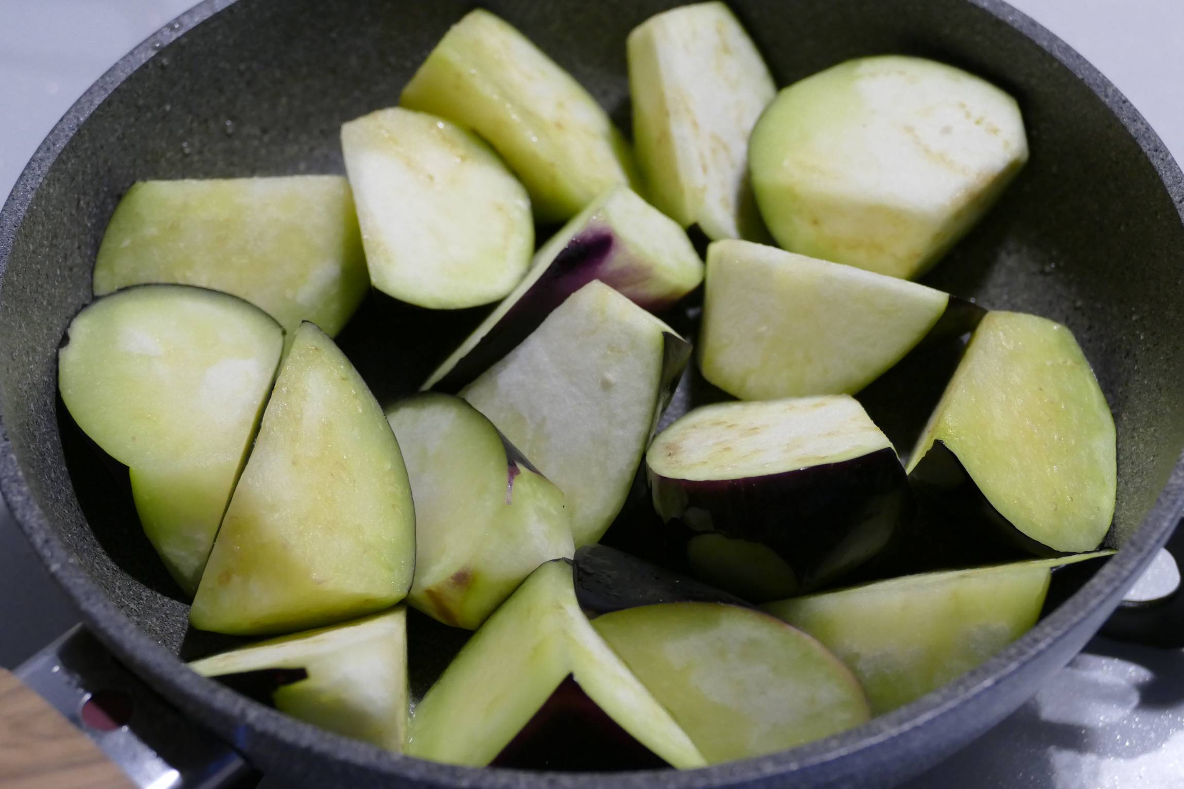 なすを大きめの乱切りにします。