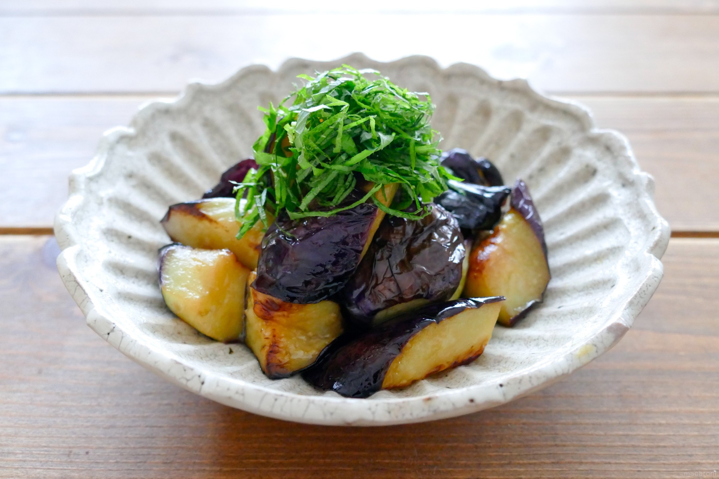 味付けは酢と塩だけの「揚げなすサラダ」。とろとろで旨味たっぷり!
