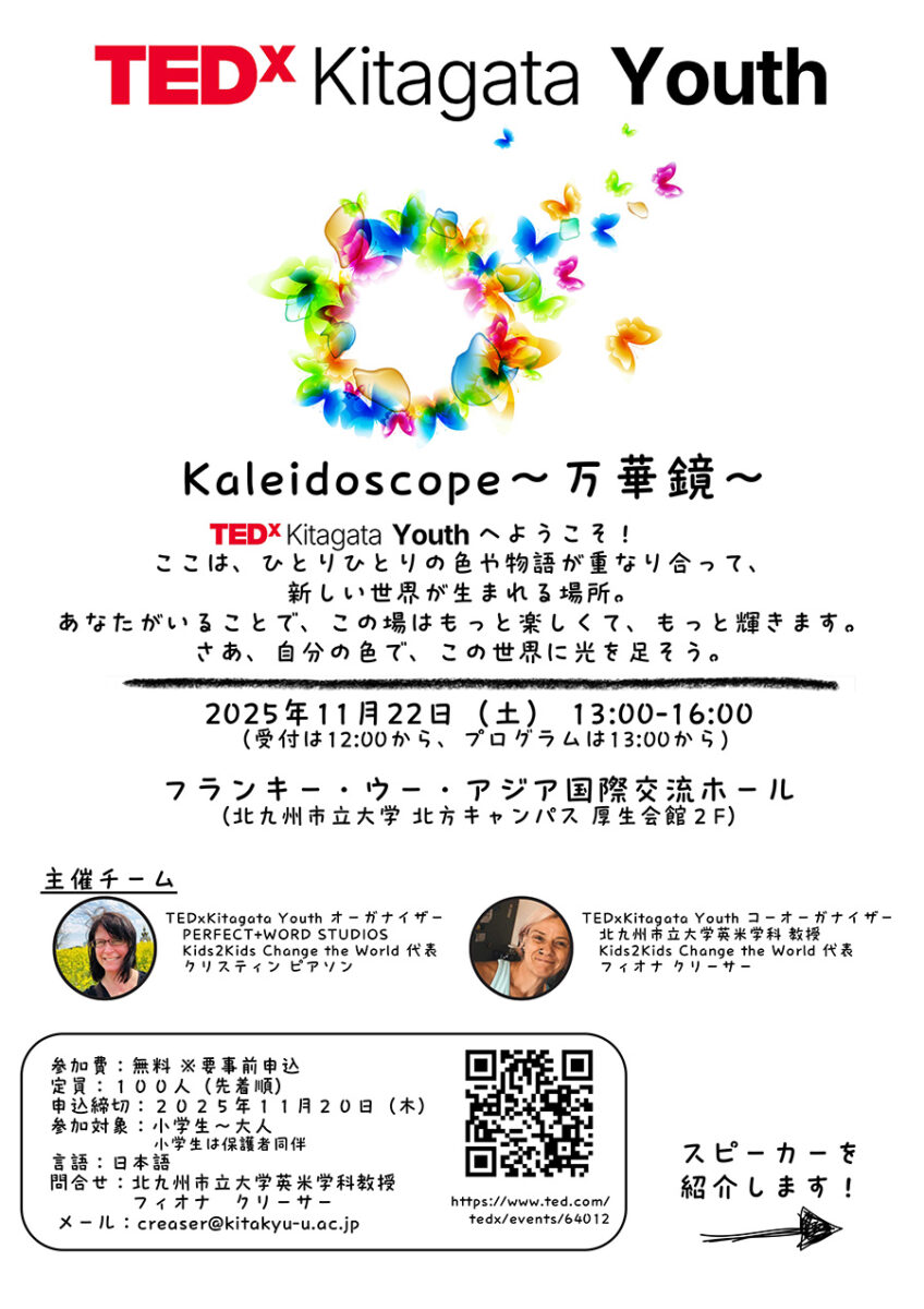 2025年11月22日(土)、北九州市立大学 北方キャンパスにて、「TEDxKitagata Youth」が開催されます。