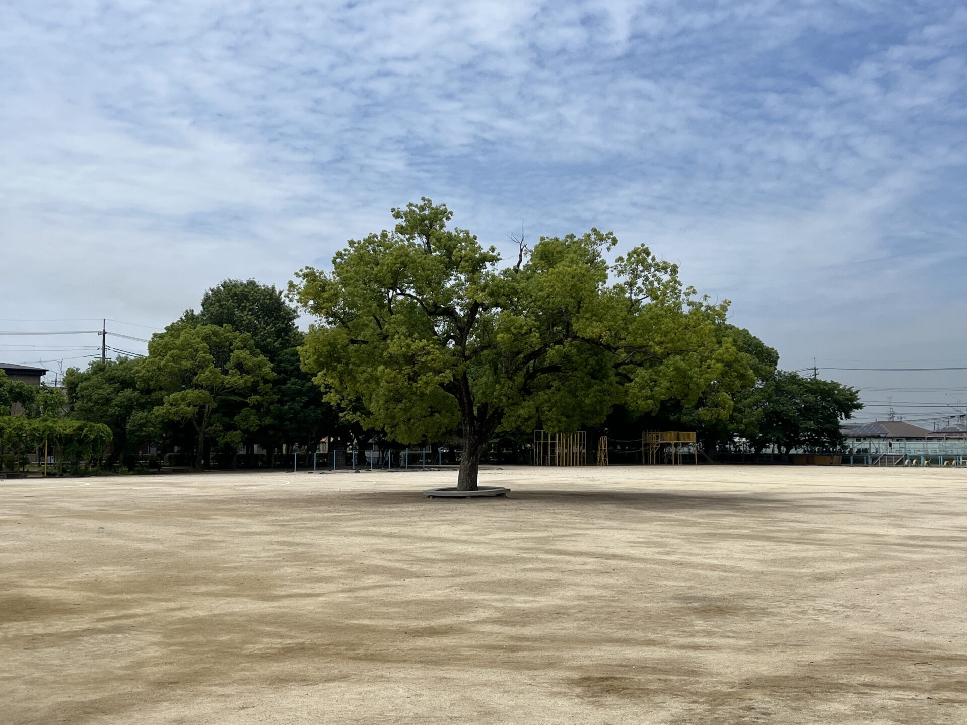 このクスノキは、学校の運動場の中央にそびえ立つ大きな木で、夏になると立派な木陰ができるため、そこで涼むこともできるそうです。