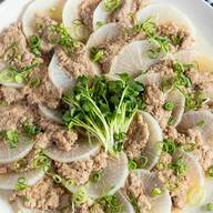 そこに「ごはんですよ」と「ねぎ油」を加えます。全体が均一になるまで和えたら出来上がり。