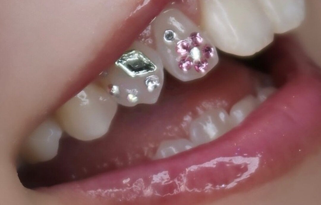 歯の表面に小さなラインストーンや金属パーツを装着してデコレーションするというもの。よくネイルで爪をデコっている人は多いと思うのですが、最近は「歯」もデコるんです!