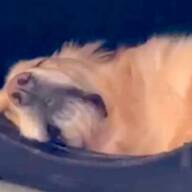 人間かと思うような行動をお見せしたくっきーちゃんですが、わんこらしい甘えん坊さんな姿が別投稿に紹介されています。ソファで寛ぐくっきーちゃん、お母さんに撫でられるととたんにお腹を見せてクネクネ…!
